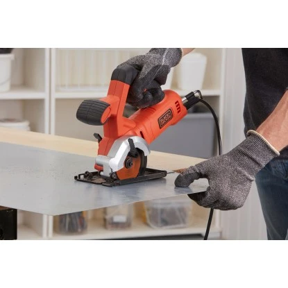Die Black+Decker Kompakt-Handkreissäge BES510 ist äußerst vielseitig und eignet sich danke ihres leistungsstarken 400 W-Motors für einen schnellen Sägefortschritt und eine hohe Schnittqualität in einer Vielzahl von Materialien, wie zum Beispiel bei Holz, Metall, Kunststoff, Fliesen, Kupferrohr, Bodenbelägen, etc.