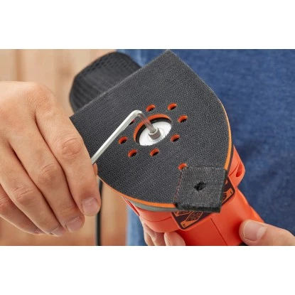 Vier Schleiffunktionen (Schwingschleifer, Dreieckschleifer, Exzenterschleifer, und Fingerschleifer), die sich einfach per Inbusschlüssel auswechseln lassen, vereint Black + Decker in einem handlichen Gerät. Der kompakte Schleifer verfügt zudem über einen Staubfangbehälter mit abwaschbarem Lamellenfilter für effizientes Staubabsaugen ohne zu verstopfen.