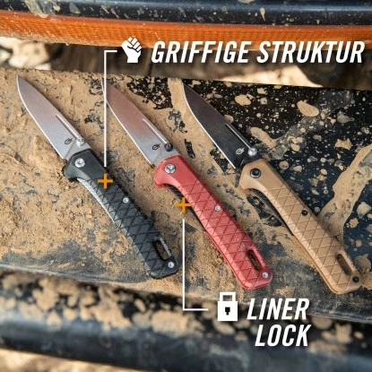 Der Platz in der Hosentasche ist begrenzt, daher ist es wichtig, ihn optimal zu nutzen. Hier kommt das Gerber Zilch ins Spiel: ein sehr leichtes Einhandmesser, das in Ihre Tasche passt und nicht mehr auffällt. Kleine Abmessungen bedeuten hier keine konstruktiven Zugeständnisse. Das Messer besitzt eine offene Konstruktionsweise mit einem auffälligem Design des Messerrückens. Beidseitige Daumenpins und ein Nagelhau sorgen für Variabilität beim Öffnen. Die 7,9 cm lange Klinge sichert per Liner-Lock-Verriegelung gegen ungewolltes Einklappen.