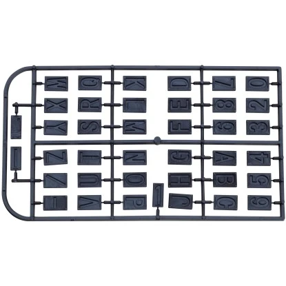 Der Proxxon Buchstaben- und Zahlensatz für die Proxxon Graviereinrichtung GE 20 und GE 70 beinhaltet die Buchstaben von A – Z mit Bindestrich, Punkt und Querstrich sowie die Zahlen von 0 – 9. Die Schablonen werden in die Führungsschiene der GE 20 und GE 70 eingesetzt.
