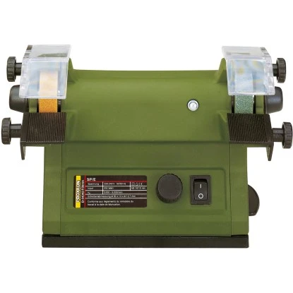 Das Proxxon Schleif- und Poliergerät SP/E eignet sich für 50 mm-Scheiben sowie Bürsten und ist mit einer elektronisch regelbaren Schleifgeschwindigkeit von 8 – 24 m/s ausgestattet.